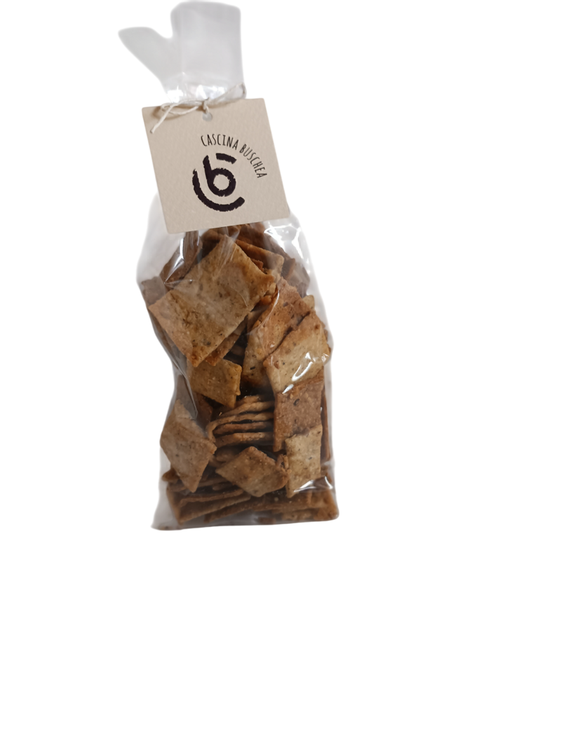 Vengono prodotti unendo nocciole, farina, acqua, olio e lievito, il sale viene aggiunto sul prodotto a cottura ultimata in modo che la sapidità venga esaltata.